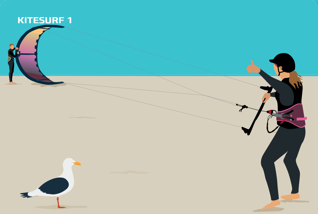 Vælg derfor et "DS-kitekursus" efter "Kitesurfer 1 Diplom" eller en lignende anerkendt standard på en Dansk Sejlunion certificeret kiteskole. Et "DS-kitekursus" tager typisk mindst 6-8 timer. Kitesurfing er ikke noget, man "prøver" - der er nogle basale færdigheder, man skal lære, før man kommer på boardet.