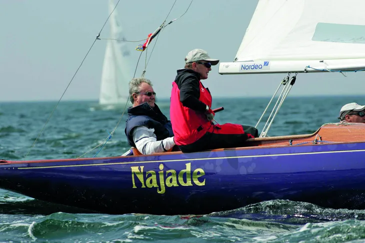 Najade på kryds, så er det op at hænge på dækket, så Dragen opnår bedste hældning og maksimum fart.