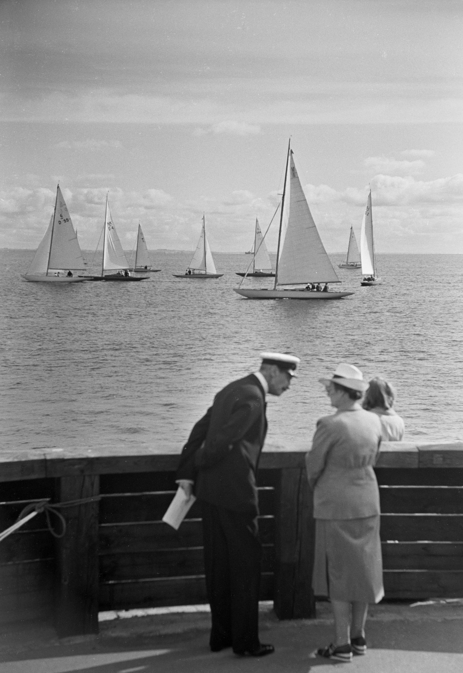 Der er kapsejlads på Øresund og kongeparret følger sejladserne fra land. Dronning Alexandrine og Kong Christian X får sig en snak om kapsejladserne. Årstallet er ca. 1912. De var begge trænede kapsejlere.