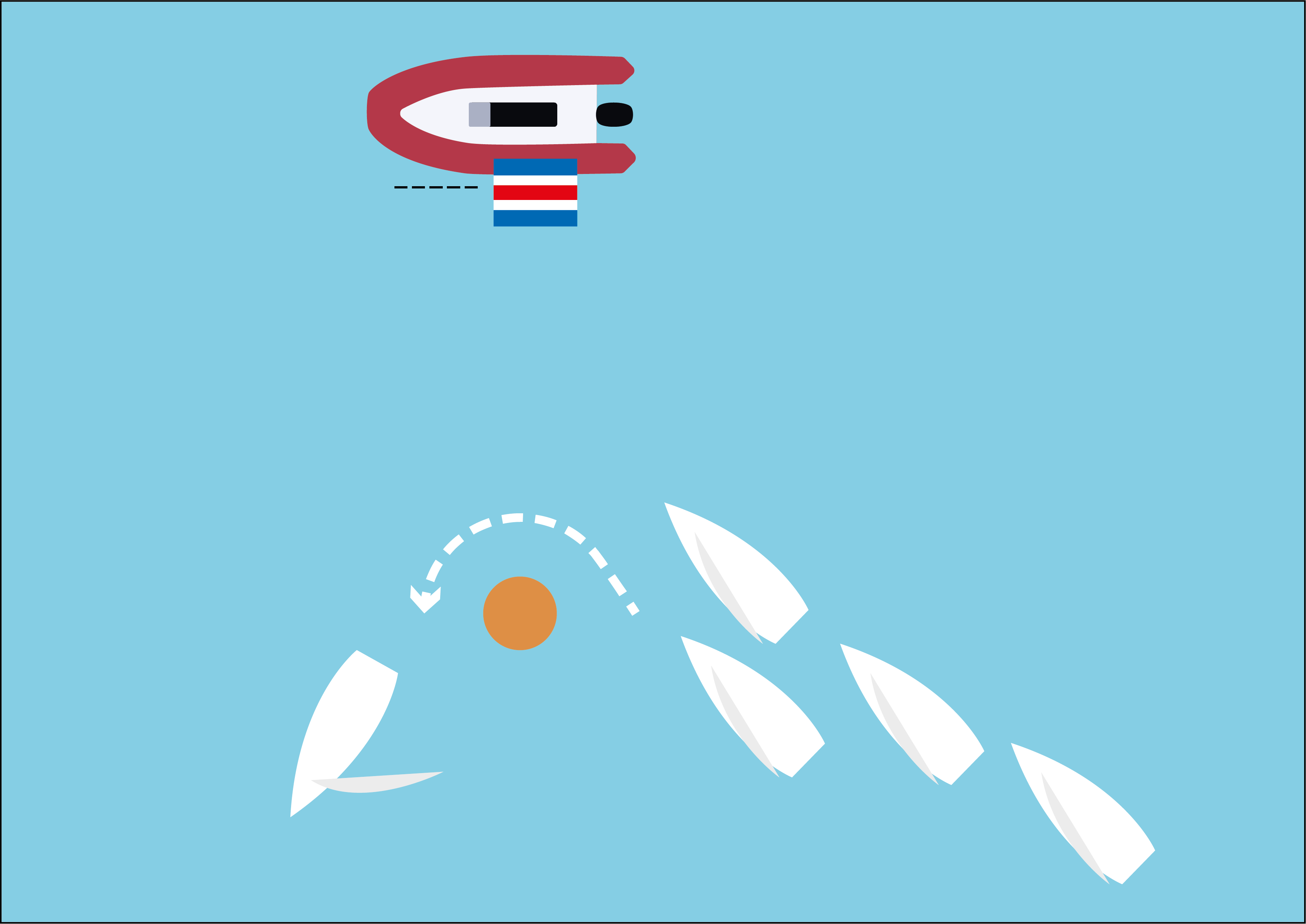 Signalerne skal vises tydeligt for alle de kapsejlende både.