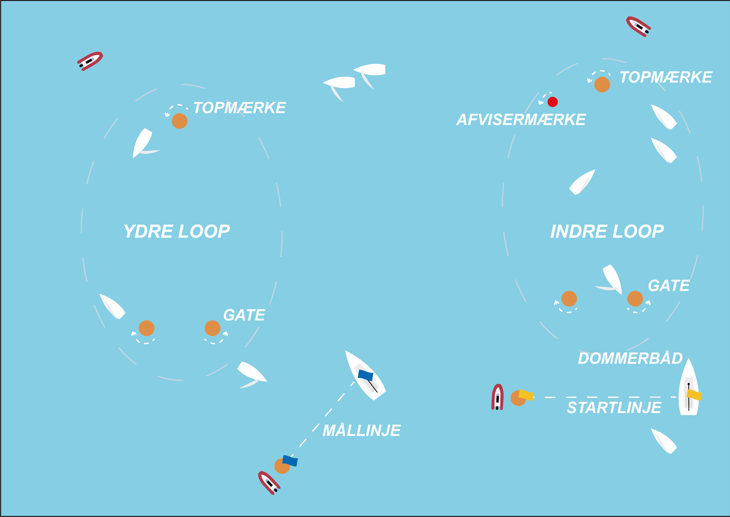 Med det setup kan man, fx have en jolleklasse på ydre loop med en omsejling der er: