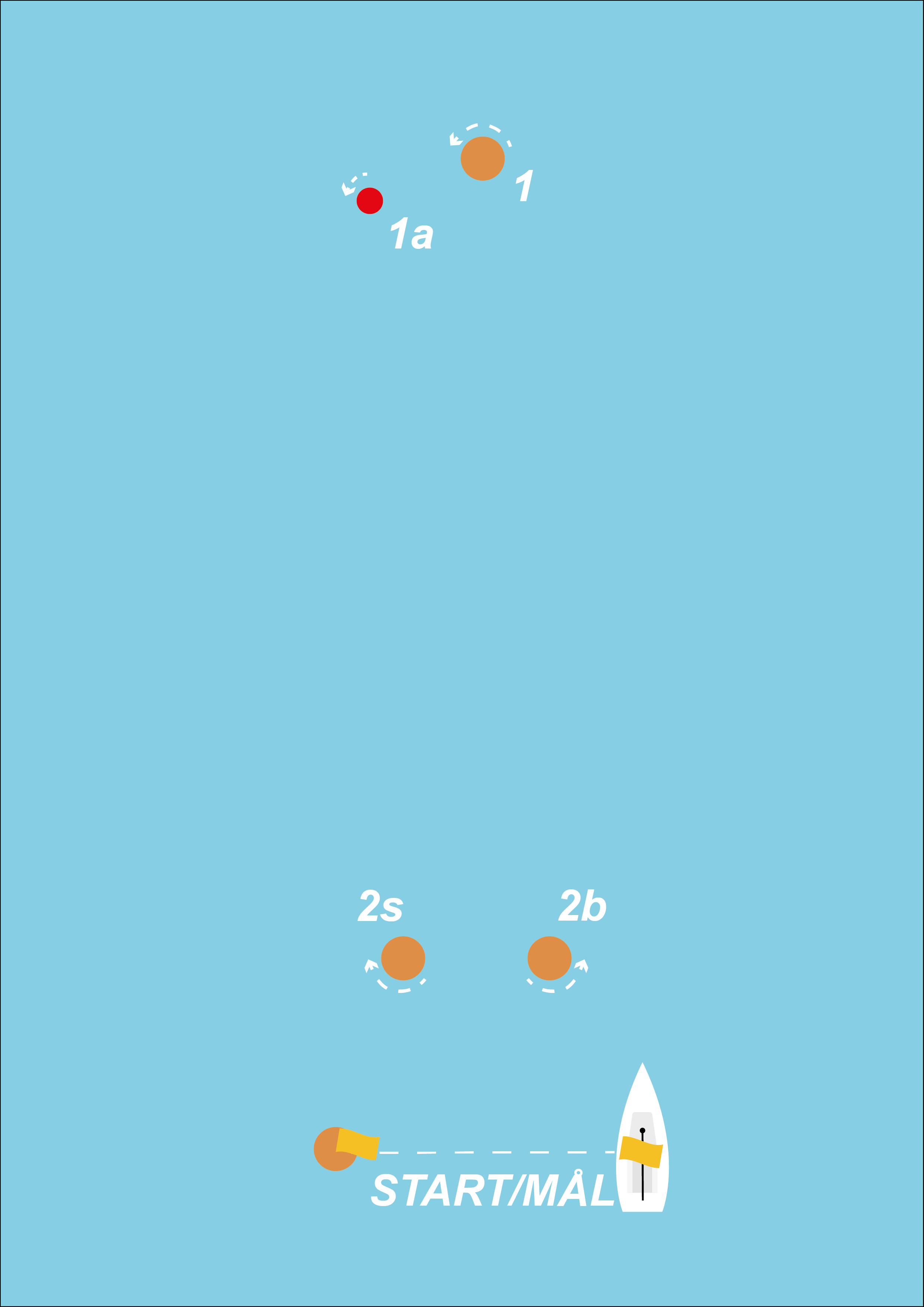 Den klassiske op/ned-bane er en af de mest simple baner, hvor man både kan vælge at have målgang nede ved startlinjen eller ovenfor topmærket.