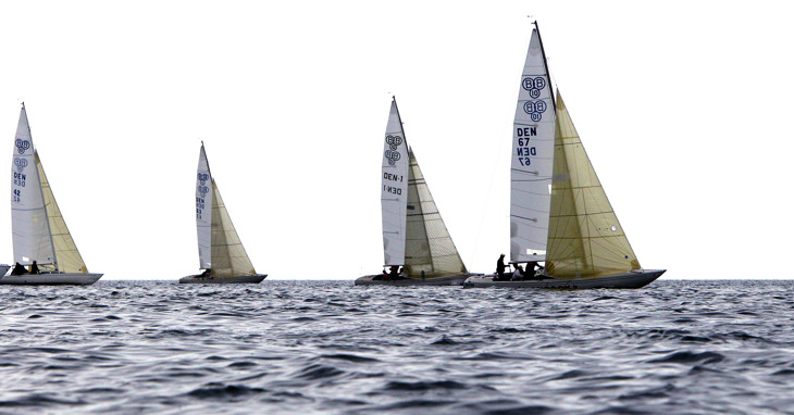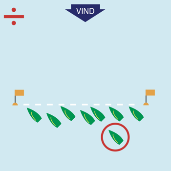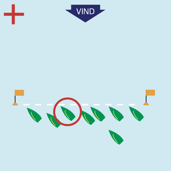 Dårlig start. Båden ligger langt fra linjen og i vindskygge fra de andre både.