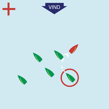 Har fået udnyttet vindskift optimalt og sejlet kort mod 1. mærke.