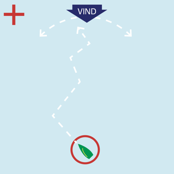 Denne båd vælger at vende væk for at undgå vindskygge.