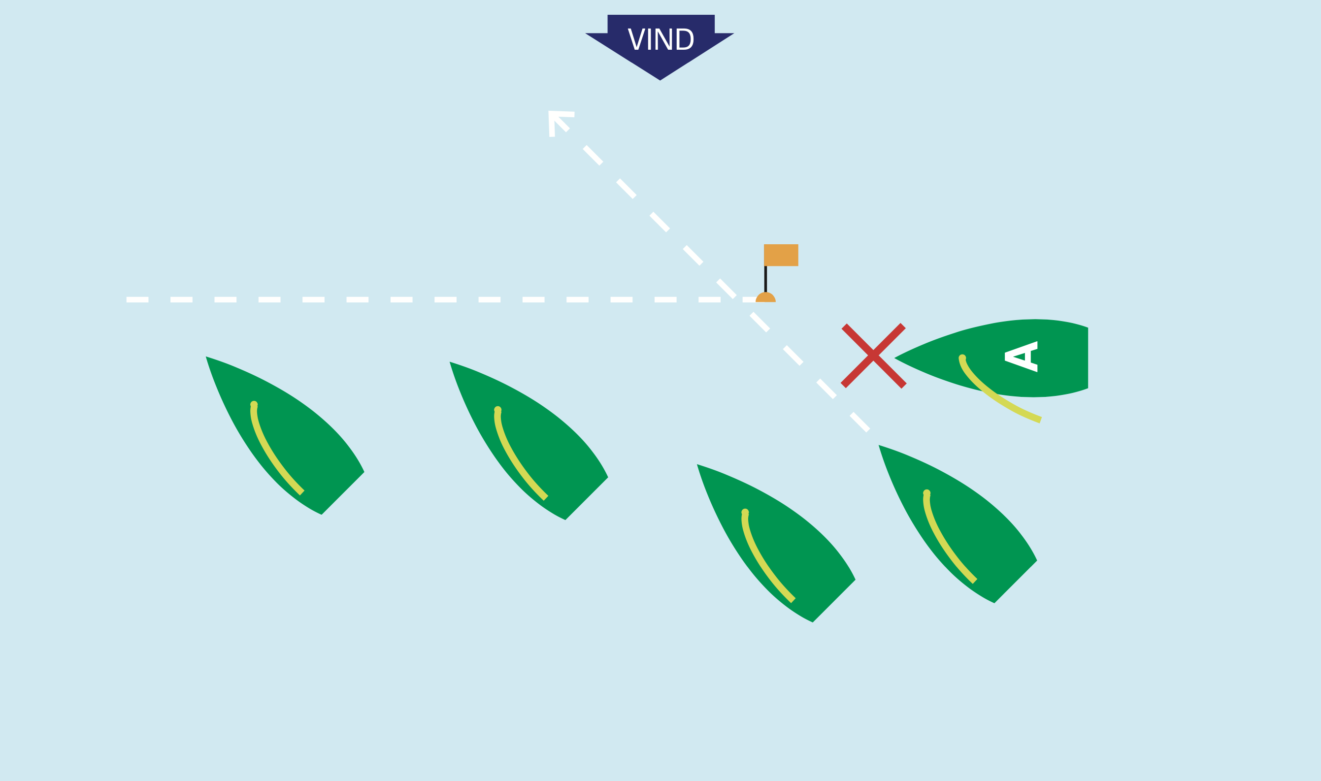 Men efter startsignalet skal man sejle 'rigtig kurs', hvilket på kryds vil sige 'bidevind'.