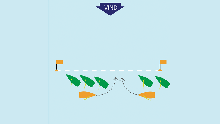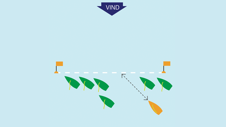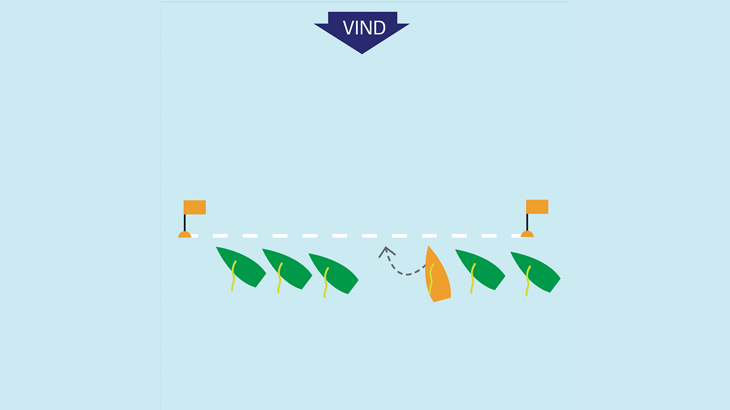 Det er vigtigt, at du ikke bliver låst og forhindret af andre både i at kunne starte, som du gerne vil. Derfor skal du 'finde hullet', hvor der er plads til at falde af og accelerere – inden du skærer op i startøjeblikket.