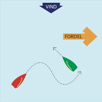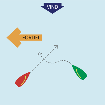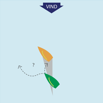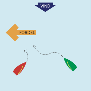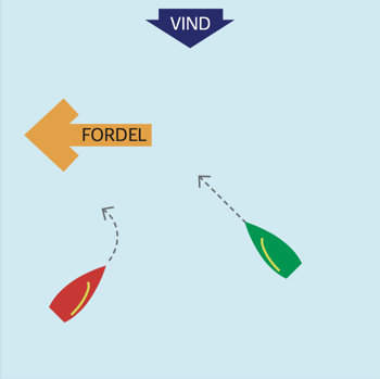 Ligger fordelen til venstre, bør bagbord båd vende – evt. som 'sikker læ'.