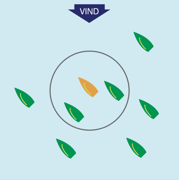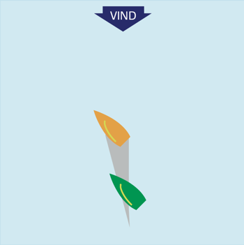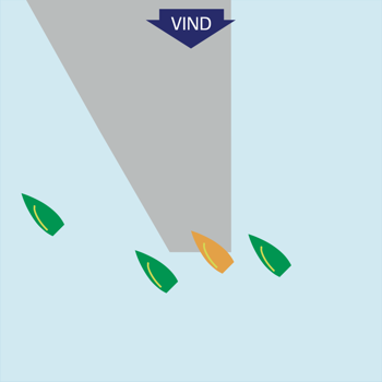 Sørg for at styre/bomme fri af vindskyggen fra den bagvedliggende båd – pej windexen.