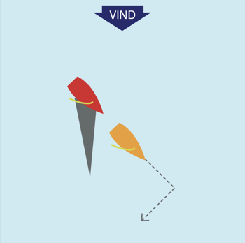 Ligger fordelen til venstre, bør styrbord båd falde med fart for at undgå 'sikker læ'.