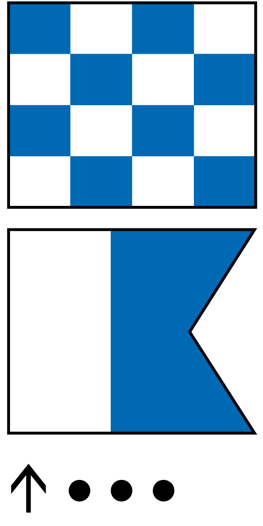 Svarstander Kapsejladser, der ikke er startet, udsættes. Varselssignal vil blive givet 1 minut efter nedhaling, medmindre sejladsen på det tidspunkt igen udsættes eller opgives. |