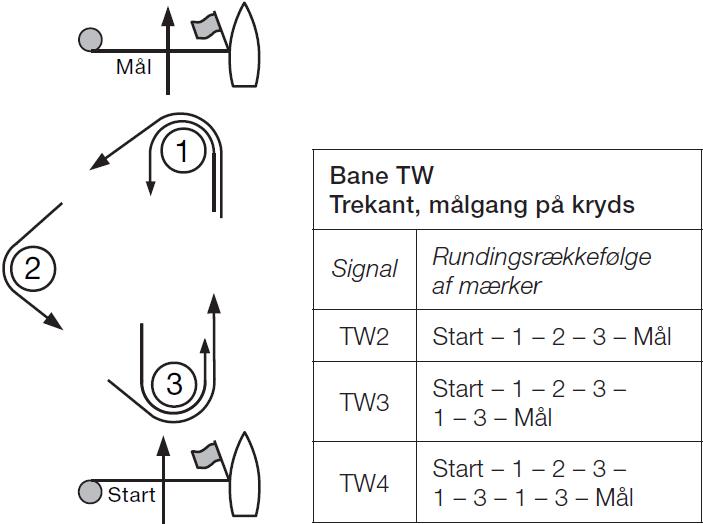 Senest ved varselssignalet vil kapsejladskomitéen angive banen samt eventuelt vise den omtrentlige kompaskurs til det første mærke.