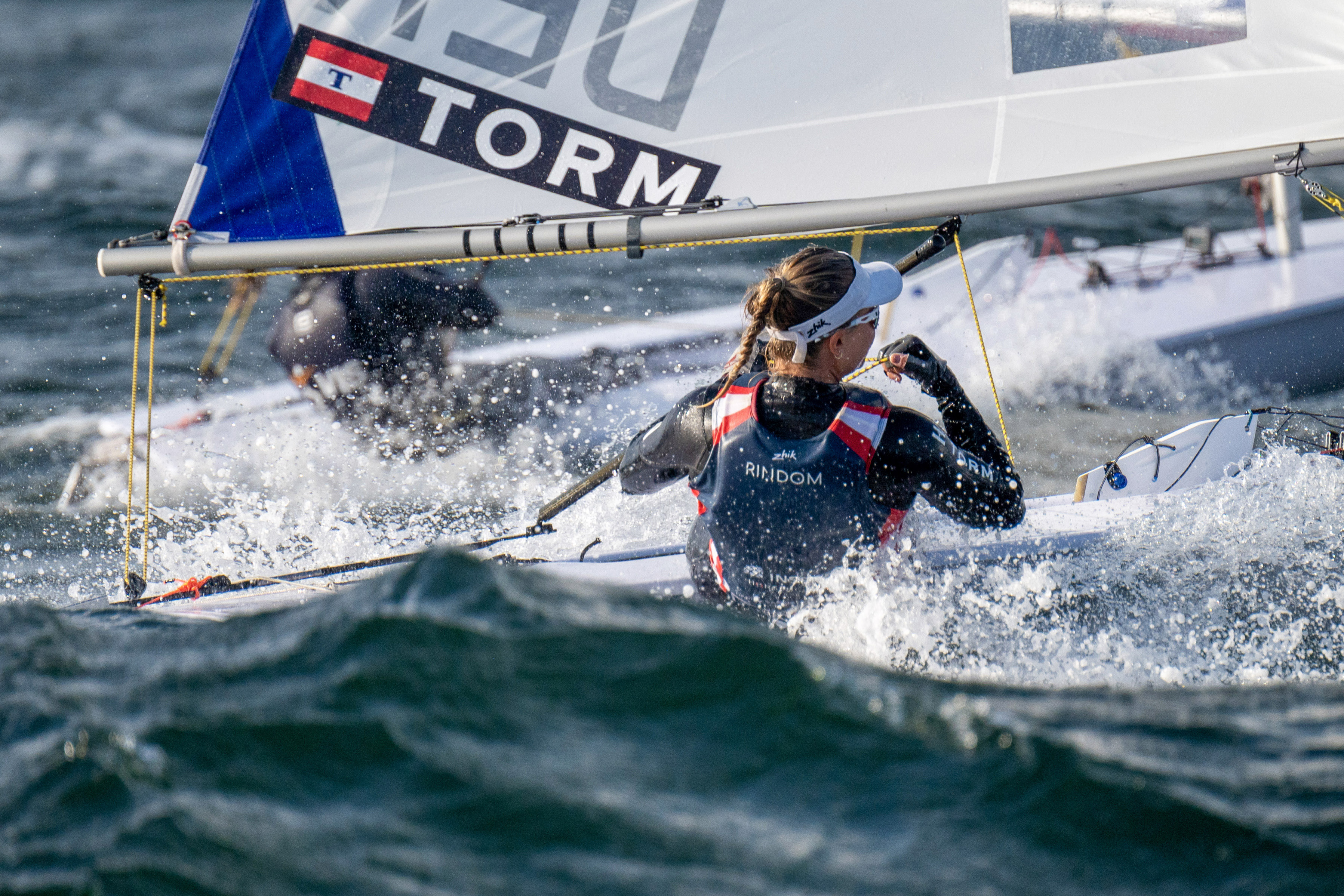 Belgiske Emma Plasschaert indtager andenpladsen, ét nettopoint foran Rindom, mens forfølgerne på de næste pladser blandt andre tæller den irske OL-sølvvinder fra 2016, Annelise Murphy, der er vendt tilbage til Laser Radial efter en mindre vellykket 49erFX-satsning.