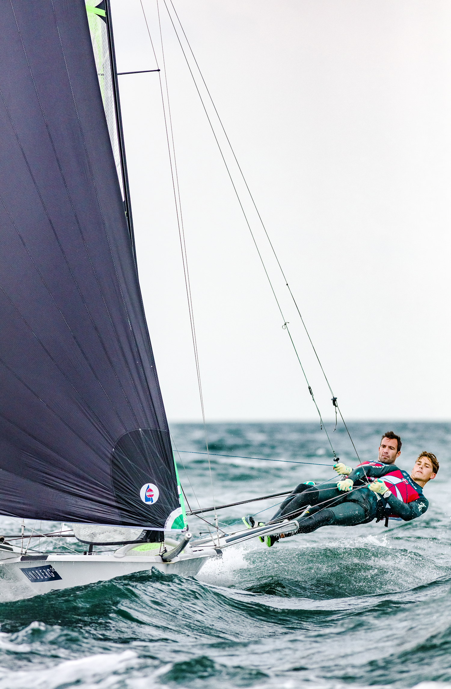 "49er-sejlerne Jonas Warrer og Jakob Precht". Fotos: Yellows for Team Danmark