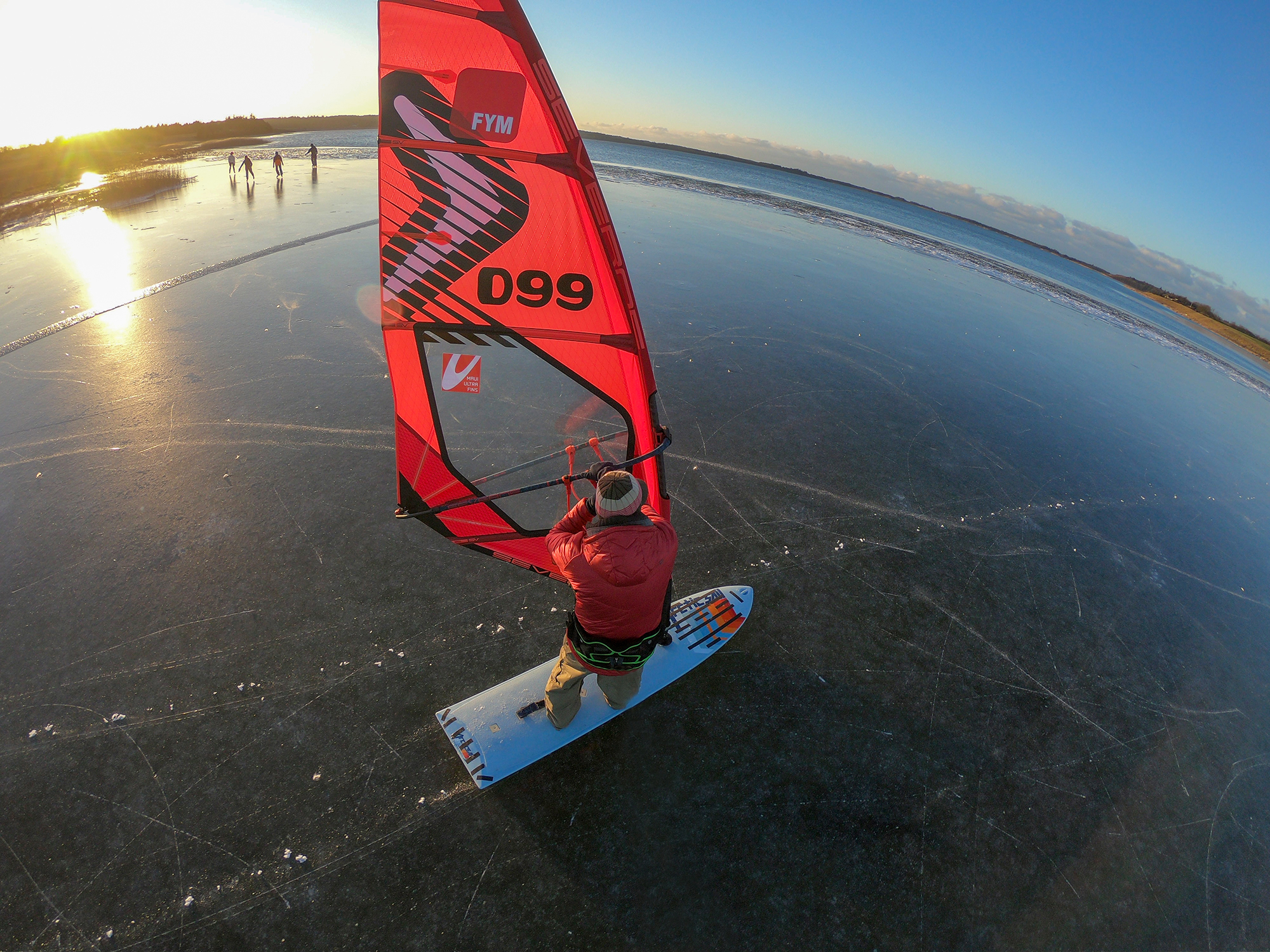 – Det er egentlig en ret nem sport, hvis bare man har en lille smule windsurfing-evner og ikke tager ud i for meget vind til at starte med. Så kan man komme i gang ret hurtigt. Man skal dog passe lidt på, for det går rigtigt stærkt. Der er ikke friktion på isen, og derfor kommer man nemt op i virkelig høj fart.