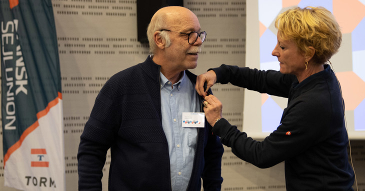 – Han er i en helt særlig kategori som dommer - elsket og respekteret lokalt, nationalt og internationalt. Som anerkendelse og tak for en livslang indsats for sejlsporten til glæde for tusindvis af unge og voksne kapsejlere modtager Jens Villumsens Dansk Sejlunions Ærestegn, fastslog Markert, inden hun overrakte Villumsen den største hæder i Dansk Sejlunion.