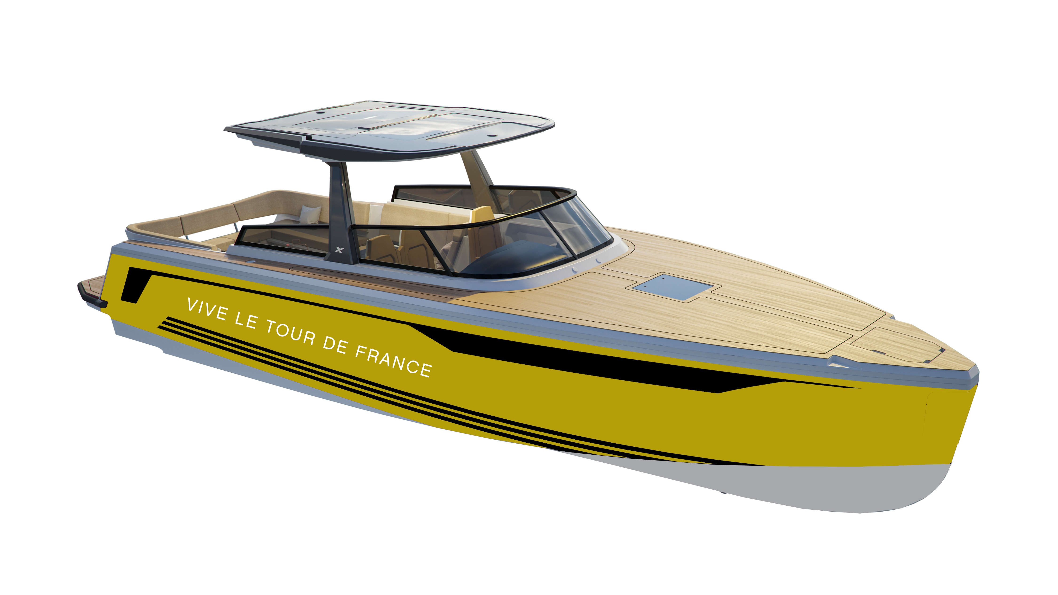 X-Yachts folierer en af deres X-Power motorbåde i gul, som kommer til at ligge i vandet ved Aabenraa, når feltet kommer forbi 3. juli.