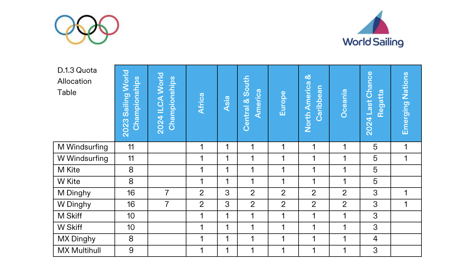 Den eneste plads, der endnu ikke er sat navn på, er den ene af de to ILCA 7-pladser. Den afgøres først efter stævnet i Kiel i juni.