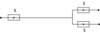Ved flere enheder monteret på et kraftigt kabel kan man installere sikringerne som vist på tegningen.