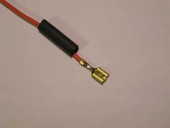 Ledning er påloddet og løs krympeflex skubbet ind over stik.