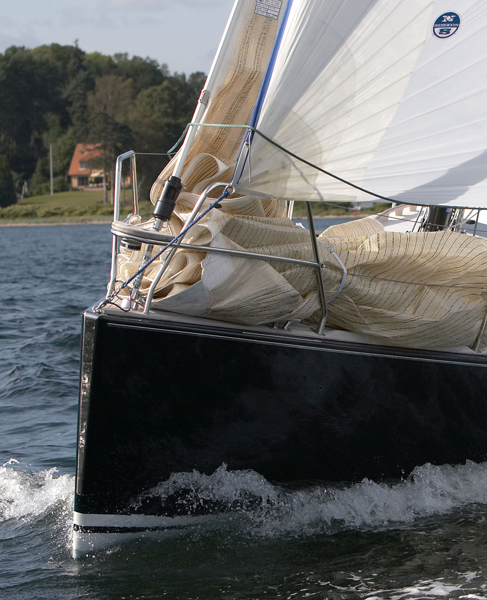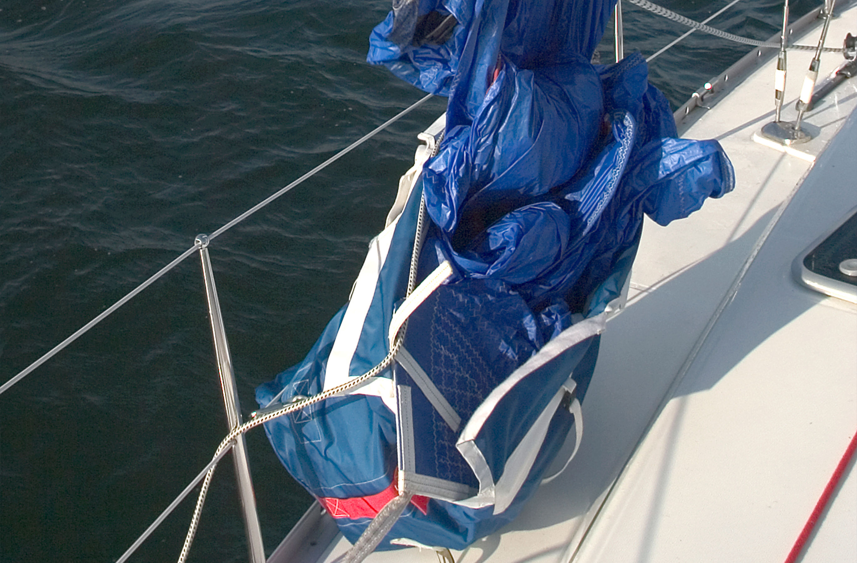 Gennakere er normalt nemme at tage ned. Når du kan falde næsten ned til plat læns. Så er sejlet næsten ”håndtamt” i læ af storsejlet.