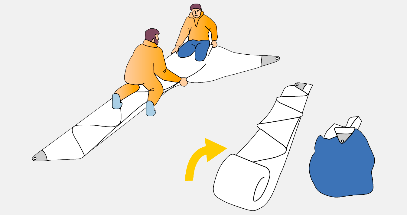De skarpe knæk, der opstår ved foldningen, kan undgås ved i stedet at rulle sejlet.