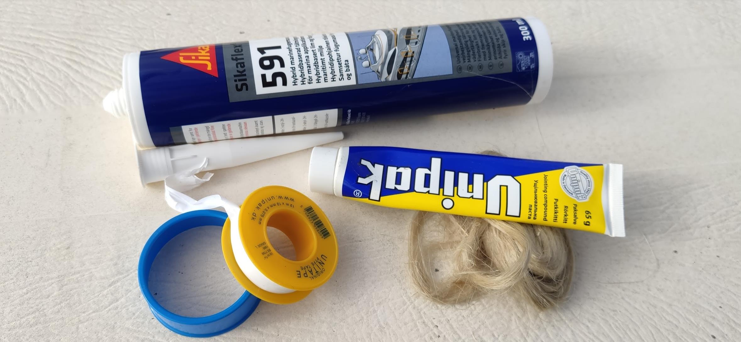 Der er tre muligheder, når du skal 'pakke' delene på en søventil. De kan limes med en egnet fuge, pakkes med teflon-tape eller med pakgarn og paksalve.